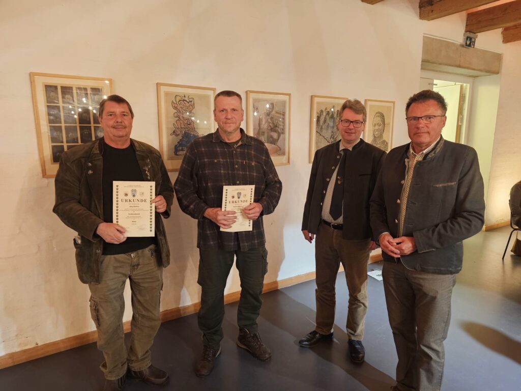 - Die Verdienstnadel in Silber erhalten die Weidmänner Jörg Stiehm und Thomas Wussow